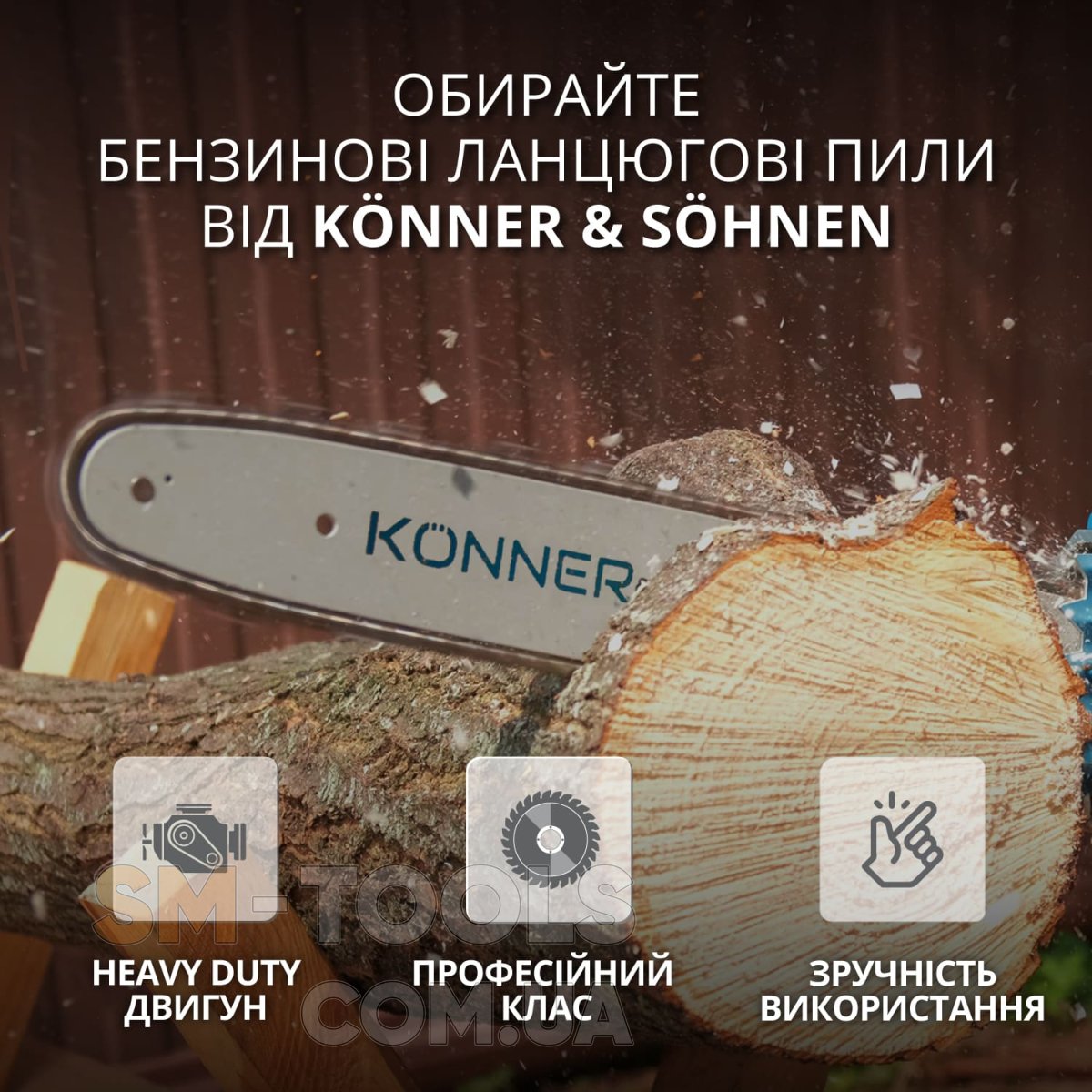 - ВЫСОКАЯ ЭФФЕКТИВНОСТЬ ДВИГАТЕЛЕЙ: Двигатели бензопил K?nner & S?hnen отличаются высокой надежностью и стойкостью к износу, что гарантирует длительный срок службы инструмента.