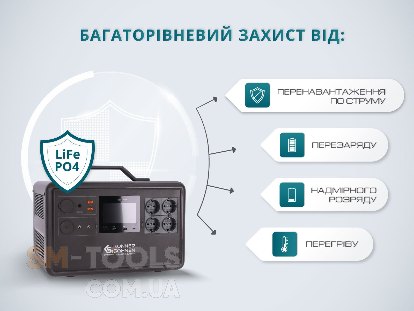 Эти современные станции питания могут выполнять функцию блока бесперебойного питания (ББП) - устройства, которое обеспечивает автоматическую подачу питания в случае сбоя в электросети. В считанные миллисекунды станция передаст напряжение на приборы. Станции имеют значительно больший запас энергии, чем у обычных ББП. - Lifepo4:
