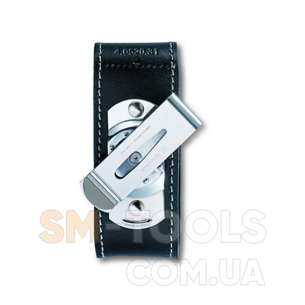 Чехол - ножны на пояс Victorinox Vx40520.31, из кожи, чёрный, на липучке с повор. клипом для ножей(84-91мм) 2-4 слоя.