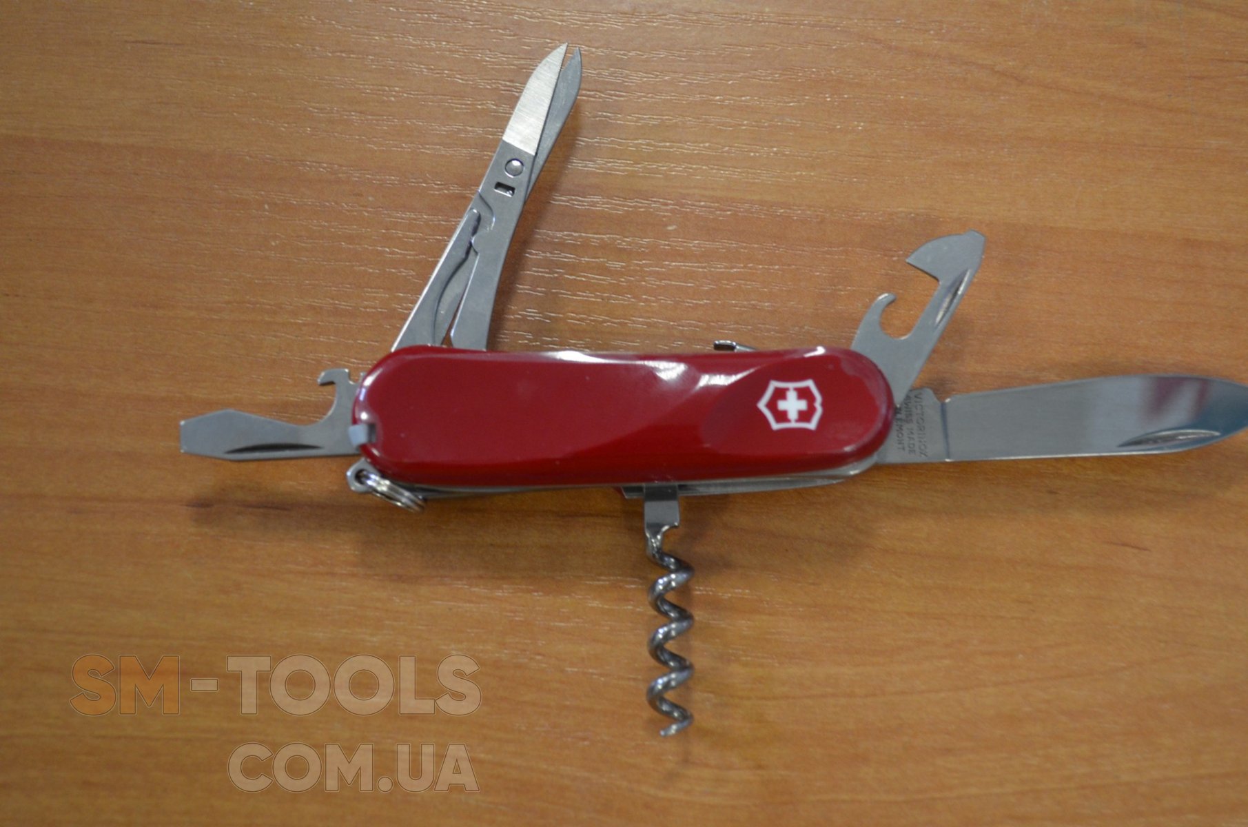 Складной нож Victorinox Evolution Vx23903.SE – отличный подарок для сильной половины человечества. Оснащён отлично режущем малым клинком, соответственно режет все что не превышает его длину. Дополнительно имеет специальный механизм для фиксации лезвия в открытом положении. Важными элементами для мужчин всегда будут открывалки для бутылок и консервов, а так же штопор, который сможет вытащить Вам любую пробку из бутылки. Безусловно, что в ремонтах выручит приспособление для зачистки проводов с шилом. Плюс, складной набор оснащён и специальными отвёртками, которые с лёгкостью смогут закрутить и открутить крепёжные изделия, к примеру винты или же шурупы. А ножницы и пилочка с очистителем для ногтей – отличные ежедневные предметы гигиены. Изготовлен Victorinox Evolution Vx23903.SE из нержавеющей стали. Дополнительно рукоятка покрыта специальным прочным пластиком, который стойкий даже к мелким царапинам и потёртостям. К том же, очень удобна в использовании, поскольку не скользит. А за счёт специальной эргономики рукояти не утомляется рука.