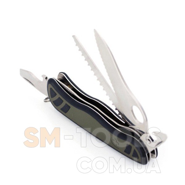Уникальный дизайн, многофункциональность и главные инструменты для мужских работ – все это содержит именно складной нож Victorinox Swiss Soldier Knife Vx08461.MWCH. Модель изготовлена в презентабельном дизайне, поэтому можете смело дарить каждому ценителю высочайшего качества, надёжности и долговечности. Эксклюзивный нож в первую очередь замечательно подойдёт для разрезания строп, тросов, ремней и других тканей. Ведь, оснащён специальным клинком с серрейторной заточкой. Важным элементом в данной модели является фиксатор типа Liner-lock, который отлично фиксирует лезвие в открытом положении, предотвращая при этом его складывание. Так же стоит отметить и отлично режущую пилу для дерева, которая не клинит в древесине. Безусловно, что специальные отвёртки легко закрутят и открутят необходимые крепёжные изделия, к примеру шурупы или же винты. Во многих мужских работах всегда понадобиться шило. А в командировках и туристических походах – консервный нож и открывалка для бутылок. Изготовлен складной набор исключительно из высококачественных материалов. А в отличии от других моделей, именно Victorinox Swiss Soldier Knife Vx08461.MWCH разрабатывался компанией Victorinox (Викторинокс) специально под заказ для швейцарской армии.