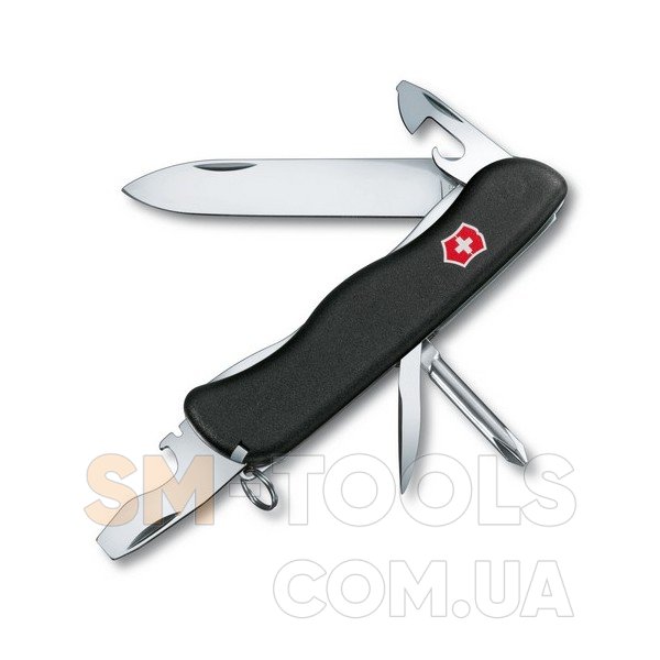 Нож оснащён главными и самыми необходимыми элементами для использования в туристических походах. Лезвие этой модели длинной 111 мм., позволит Вам с лёгкостью к примеру разрезать хлеб. К тому же клинок быстро открывается с помощью специального ригельного фиксатора. Плюс, модель изготовлена из высококачественной нержавеющей стали. Поэтому складной нож на все 100% долговечный и долгое время не требует дополнительной заточки. Кроме этого швейцарский нож оснащён и другими не менее важными элементами. Следует отметить в этой модели и нож для открывания консервов. Ведь, с его помощью Вы сможете не только с лёгкостью открыть банку, а главное быстро и аккуратно и без зазубрин.