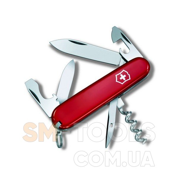 Складной нож Victorinox TOURIST Vx03603 является аналогом Victorinox Spartan, но имеет более компактные габариты, его длина составляет 84 сантиметра, и меньший вес – пятьдесят грамм. Это армейский, офицерский нож, который станет самой нужной вещью в любых самых сложных полевых условиях. Без такого ножа совершенно невозможно обходиться в любом походе, на любой вылазке. В его довольно маленькую рукоять встроены девять инструментов, которые выполняют тринадцать функций. Шило, зубочистка, пинцет – функции из разряда вспомогательных, в этой модели являются такими же востребованными, как и лезвия ножей, штопор или консервный нож.