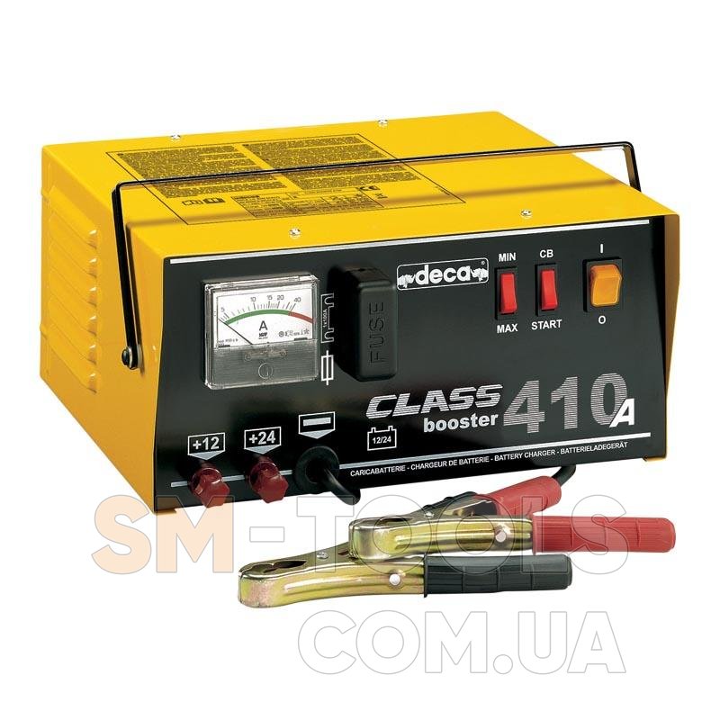 Устройство предназначено для зарядки свинцовых аккумуляторов и батарей аккумуляторов с выходным напряжением 12 или 24 вольта, емкость которых равна от 15 до 500 ампер-часов. Зарядный ток достигает значения 35 ампер, а пусковой ток стартера может составлять 330 – 450 ампер. Deca Class Booster 410A является и простым и надежным прибором для обслуживания аккумуляторов. Эта модель позволяет получить стабильное значение зарядного тока и обеспечить высокое качество зарядки свинцово-кислотных аккумуляторов. DecaClassBooster 410A произведено фирмой Deca (Италия) и характеризируется высокими эксплуатационными качествами и качеством изготовления.