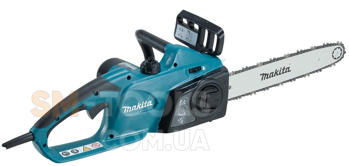 Электропила Makita UC3541A обладает компактными размерами и небольшим весом. Она предназначена для постоянного использования. За счет габаритов, ею можно работать длительное время без усталости. Кроме этого удобство добавляют прорезиненные накладки на ручках, которые снижают вибрацию. Также повышает производительность быстродействующее устройство натяжки цепи и снятия шины без использования ключей. Шина длиной в 35 см с цепью является основным режущим элементом. Важно отметить, что смазка цепи происходит автоматически, что положительно влияет на срок службы. Электроинструмент оборудован инерционным тормозом выбега цепи, что существенно повышает безопасность пользователя. Ведь это его защищает от травм в случае обратного удара. В частности остановка цепи происходит за мгновение до того, как «отброшеная» пила может «догнать» оператора и нанести увечья. Эта модель также имеет систему встроенного ограничения пускового тока, что защищает сеть от перегрузок и предотвращает преждевременному износу инструмента. А еще существует наличие плавного пуска, который позволяет начать работу без рывков. К тому же масляный насос имеет возможность регулировки подачи смазки.