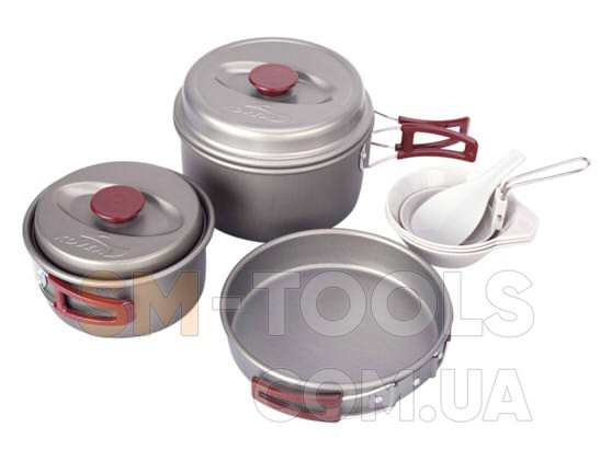 B комплект входит сковорода, 2 кастрюли, 3 небольших пиалы, лопатка и компактный складной половник.