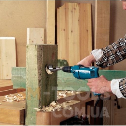 В комплект поставки, кроме дрели-шуруповерта Makita DP4700 входит также быстрозажимной патрон и боковая ручка.