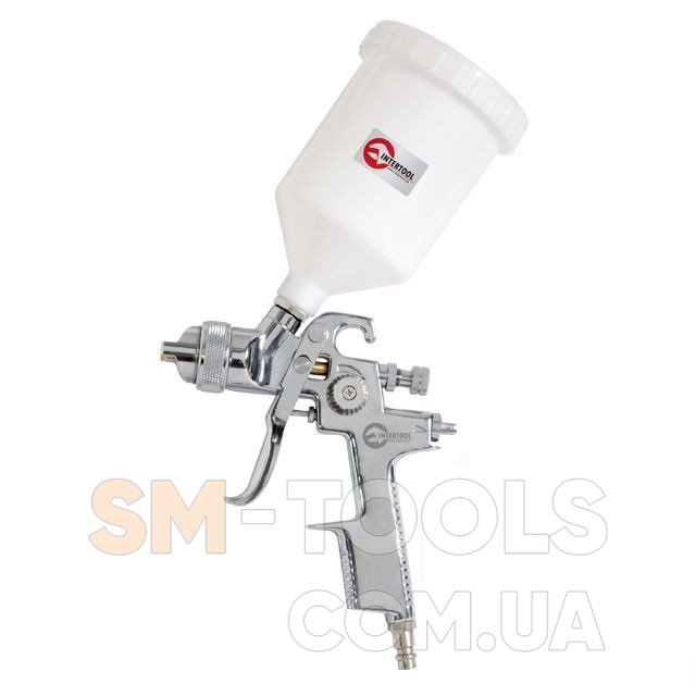 Краскопульт INTERTOOL PT-0103 применяется для профессиональных работ, в том числе и тонировки, аэрографии, художественного лакирования. Данный краскораспылить создан с применением технологии HVLP, что обеспечивает 75% эффективность переноса ЛКМ на окрашиваемую поверхность. Объем пластикового бачка пистолета составляет 600 мл. Диаметр форсунки — 1,4 мм, а рабочее давление — 3 атм. При этом, расход воздуха составляет от 230 до 300 л/мин.