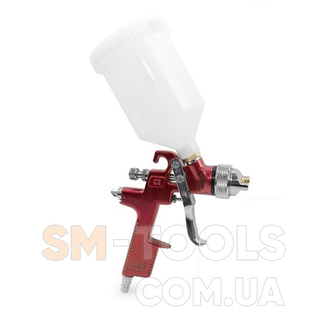 Модель покрасочного пневматического пистолета INTERTOOL PT-0104 — это профессиональный инструмент, который предназначен для работы с различными видами ЛКМ. Он разработан на основе технологии HVLP, что позволяет значительно снизить потери материалов на туманообразование. С помощью данной технологии достигаются высокие показатели (до 75%) переноса ЛКМ на необходимую поверхность. Диаметр форсунки — 1,4 мм. Объем пластикового бачка с верхним расположением составляет 600 мл. Показатель расхода воздуха при рабочем давлении до 3 атм колеблется в пределах 200-300 л/мин. Распыление может осуществляться овальным или плоским факелом.