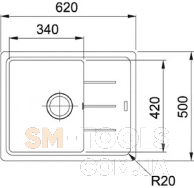 Габариты мойки (ШхГхВ): 62х50х20,5 см