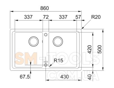 Габариты чаши (ШхГхВ): 33,7х42х20/33,7х42х20 см