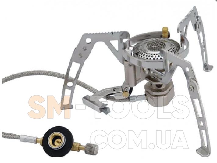 Система предварительного подогрева газа способствует более полному его сгоранию и ровному горению. Горелка рассчитана на работу при низких температурах. Идеальна для применения в зимних условиях. Имеет пьезоподжиг. Компактно складывается в пластиковый футляр.