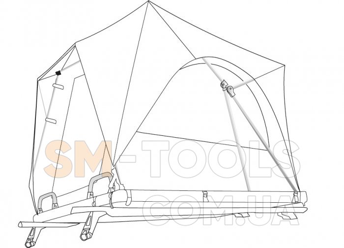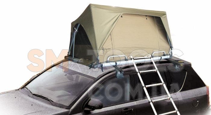 Палатка закрепляется на поперечных дугах багажника автомобиля (автомобильный багажник в комплект не входит). Установка/сборка производится с пульта дистанционного управления и длится около 20 секунд. Мотор приводящий в движение механизм палатки питается от автомобильной розетки. в случае отсутствия электоэнергии возможна ручная установка с помощью съемной ручки. Окна и вход палатки продублированы москитными сетками. Есть возможность провести освещение в палатку от автомобиля. Внутри есть карманы для мелочей. Складная алюминиевая лестница адаптируется под автомобили различной высоты. Возможно использовать в качестве грузовой платформы.