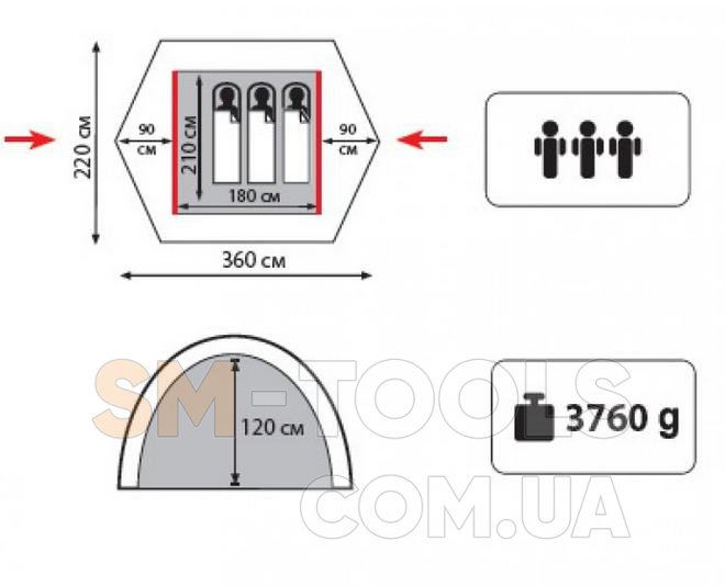 Материал тента: 100% Полиэстер 75D/190T RW PU 3000 мм в ст