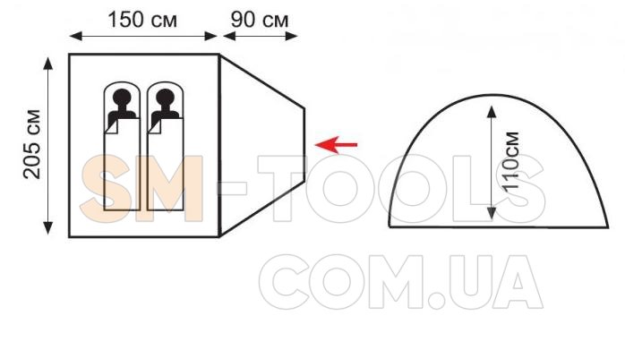Материал тента: 100% Polyester 75D/190T RW PU 3000мм в ст