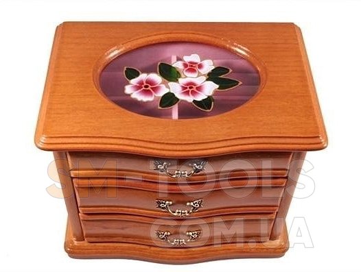 Комодик King Wood для украшений трехуровневый JF-K2539A - трехъярусный комодик c витражными цветами на крышке, оптимальный подарок для любой женщины. Вы можете не бояться, что у нее уже есть где хранить украшения. Вы должны знать один секрет – для женщины шкатулочек мало не бывает – для каждой найдутся дорогие сердцу вещички, которые нет где поставить и которые вечно теряются. Практичность комодика King Wood для украшений трехуровневого JF-K2539A заключается в его многофункциональности: три яруса предназначаются для разных ювелирных украшений, поэтому все безделушки будут всегда под рукой, сложенные в одном месте.