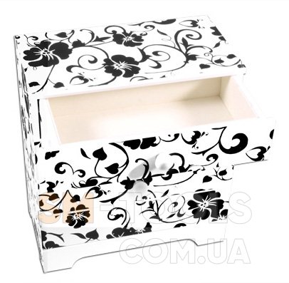 Комодик оснащен четырьмя ящичками для хранения украшений.