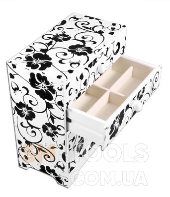 Черно-белые вещи всегда были и остаются популярными и модными, и ответ на загадку этой популярности таится в том, что при соединении двух универсальных цветов Вы получите идеальный подарок, способный стать изюминкой практически любого интерьера. Комодик King Wood для украшений четырехуровневый JF-C9040W состоит из четырых ящичков, два из которых разделены на секции, предназначенные для разных типов украшений – это ли не залог практичности и многофункциональности?