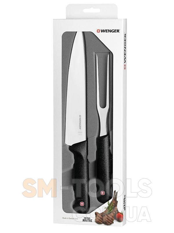 Набор состоит из ножа шеф-повара и вилки для мяса.