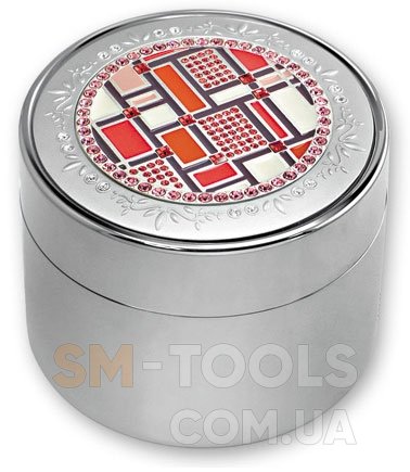 Корпус шкатулки выполнен из высококачественной стали, стразы - из цветного хрусталя. Внутри шкатулка отделана тёмно - синим бархатом. Эта шкатулка - настоящее произведение искусства. Она не только будет хранить дорогие Вам вещи, но и украсит Ваш дом. Шкатулка имеет оригинальный дизайн, цилиндрический корпус, крышка украшена стразами. Шкатулка со стразами Jardin D`Ete - прекрасный подарок женщине!