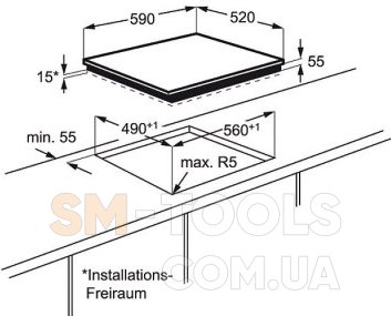 - Размер конфорок, мм: 2x145, 1x120/180, 1x210