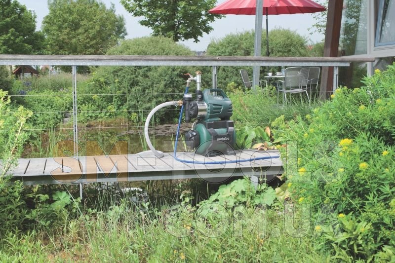 Насосная станция Metabo HWWI 3500/25 Inox представляет из себя интегрированный насосный комплекс, который включает в себя не только насос, ресивер и автоматику, но и фильтр предварительной очистки и встроенный обратный клапан .