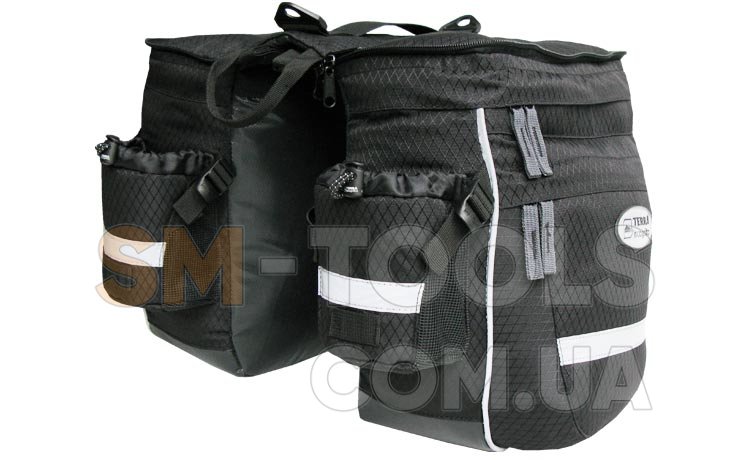 Две боковые секции, каждая объемом 8,5 / 10 литров, имеют ручки для переноски. Кроме того, отстегивающаяся верхняя секция объемом 13 / 20 литров имеет плечевую лямку и может переноситься как сумка.