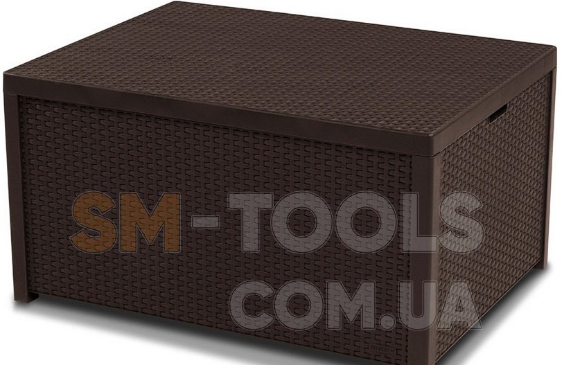 Стол-сундук Арика - решение двух проблем одновременно: достаточно большой кофейный столик является еще и коробом для хранения подушек или любых других предметов. Стол выполнен из пластика, имитирующего искусственный ротанг, поэтому он отлично подойдет к любому комплекту мебели KETER в коричневом цвете.