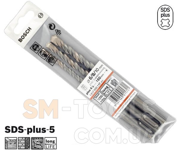 Набор сверл по бетону Bosch SDS-plus-5, 3 шт. 6/8/10 мм