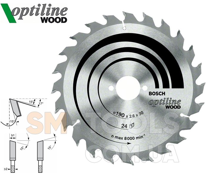 Пильный диск Bosch Optiline wood 190 мм 24 зуб.