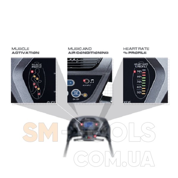 Уникальная функция контроля частоты сердцебиения Heart Rate, выполненная в виде графической цветовой шкалы, которая, исходя из возраста, показывает соотношение текущего пульса к максимально допустимому пульсу. Индикатор загорается янтарным цветом при нагрузке в 50-60%, зеленым 65% — 80%, а красным при 85% и выше, это позволяет проводить тренировку с максимальной эффективностью;