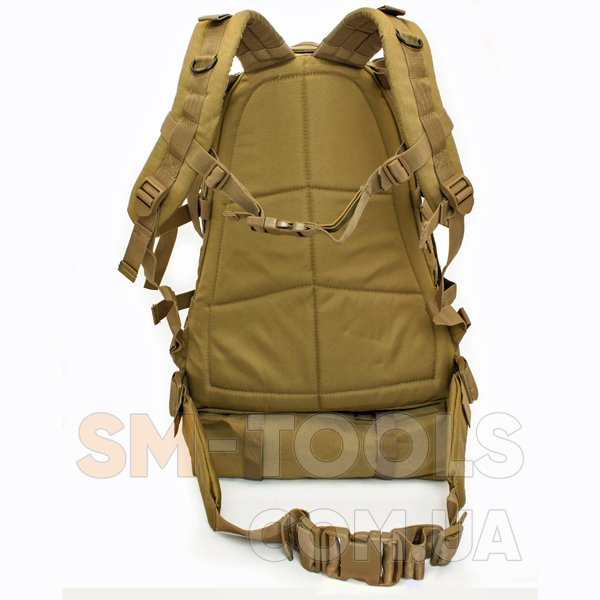 - Система «Molle» по стандартам NATO (25х35 мм) для навеса дополнительного оборудования расположена на фасадной части и по бокам рюкзака.