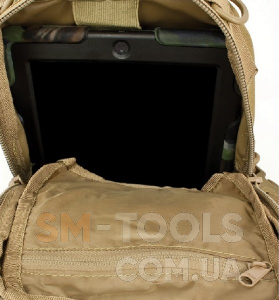- Система «Molle» по стандартам NATO (25х35 мм) для навеса дополнительного оборудования, расположена на фасадной, боковой части рюкзака, а также на плечевой лямке.