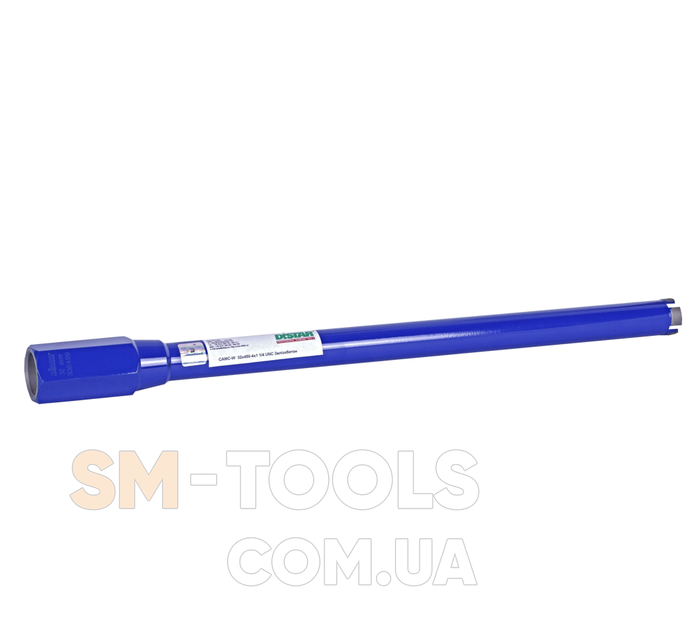 Сверло алмазное Distar САМС-W 42x450-4x1 1/4 UNC Железобетон - применяет для обработки твердых строительных материалов: для сверления отверстий в стенах большой толщины из армированного бетона, для прокладки газовых, сантехнических и других магистралей. Сверло алмазное Distar САМС-W 42x450-4x1 1/4 UNC Железобетон состоит из стального корпуса и прикрепленных к нему методом напайки режущих сегментов. Внутреннее нависание сегментов способствует легкому отбору керна. Корпус сверла имеет хвостовик 1 1/4 UNC. Максимальная глубина сверления (при стандартном корпусе) составляет 450 мм.
