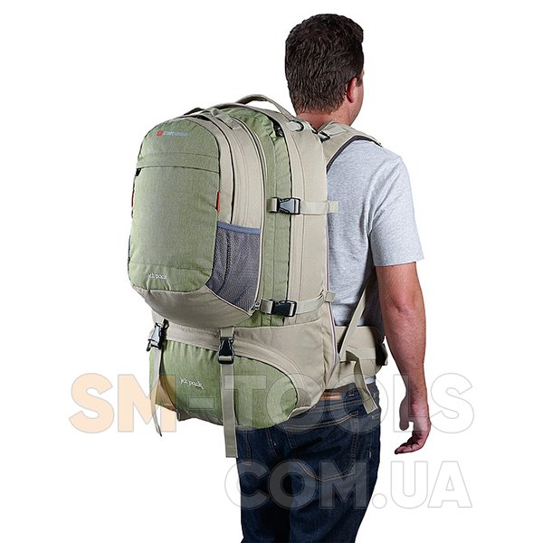 Универсальный рюкзак серии Jet pack 75 от Caribee идеально подойдет для пешего туризма, альпинизма, путешествий и треккинга. Вы сможете переносить значительный вес на большие расстояния без особого дискомфорта. Полужесткая, облегченная вентилируемая конструкции спинки с металлическими пластинами, регулируемые анатомической формы плечевые лямки в паре с комфортным набедренным поясом анатомической формы помогут вам равномерно и правильно перераспределению нагрузку на позвоночник. Пользователь, на свое усмотрение, может воспользоваться преимуществом съемного многоцелевой рюкзака "Zip Off" : при занятиях альпинизмом, использовать как ручной багаж ценных вещей при авиаперелетах, повседневные прогулки по свежем воздуху и не только. Съемный рюкзак также можно использовать для пропорционального перераспределения веса, при длительных пеших походах, разместив рюкзак перед собой.