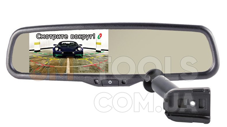 Яркость встроенного дисплея диагональю 4,3" составляет 1000 cd/m2. Это позволяет получить яркое и четкое изображение через зеркальную поверхность. Включить и выключить монитор возможно с помощью кнопки, расположенной на корпусе зеркала. При отображении видео с автомобильной видеокамеры заднего вида эта кнопка выполняет функцию регулировки яркости встроенного дисплея.