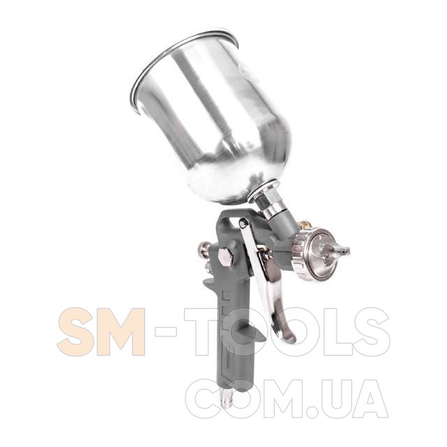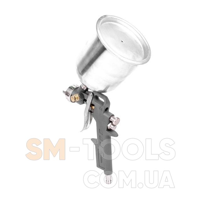 - Бачок краскопульта сделан из металла, это обеспечивает прочность и долговечность эксплуатации инструмента;