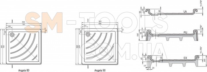 Поддоны типа LA состоят из акриловой формы и укреплены слоистым стекловолокном. Предназначены для установки в пол или на ножки.