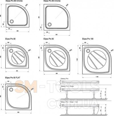 Для установки поддонов серии Galaxy PRO на пол ванной комнаты необходимо использовать набор ножек (Galaxy PRO BASE) и по желанию переднюю панель с крючками (SET).