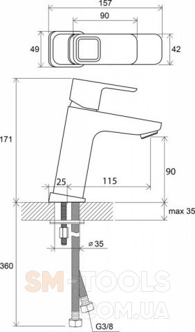 Особенности: Керамический картридж Ø 35 мм, Гибкая подводка G 3/8,