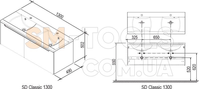 Шкафчик с двумя высокими ящиками с пространством для вещей высотой 40 см. В правой части шкафчика есть встроенный низкий выдвижной ящик, в левой части - высокий ящик с пространством для вещей высотой 40 см. Вместе с тем просверлены отверстия для дополнительного монтажа низкого ящика, который можно докупить отдельно или свободно переставить с правой части в левую. Дверцы представлены в белом глянцевом цвете, корпус же согласно выбранной цветовой комбинации. Поставляется в собранном виде. В комплектацию изделия входит монтажный набор (болты, петли, заглушки). Шкафчик устанавливается прямо на стену, нельзя использовать регулируемые ножки MR Base. Для целостного решения и согласованного дизайна ванной комнаты рекомендуем шкафчик под двойной умывальник комбинировать с остальными изделиями концепции Classic (двойным умывальником Classic 1300) и другой продукцией RAVAK.