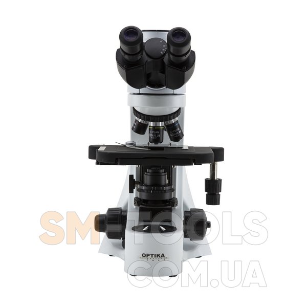 Микроскоп дает большую вариативность увеличений в пределах от 40х до 1600х. Объективы 40х и 100х имеют подпружиненную конструкцию, не позволяющую повредить объектив либо образец при чрезмерном поднятии предметного столика. Объектив 100х OIL рекомендуется использовать только как иммерсионный. Для повышения разрешения при больших увеличениях конденсор также может быть использован как иммерсионный. Поверхность тубусов покрыта черным анодированным покрытием Type III, надежно противостоящим истиранию и коррозии снаружи и не допускающему нежелательных переотражений внутри.