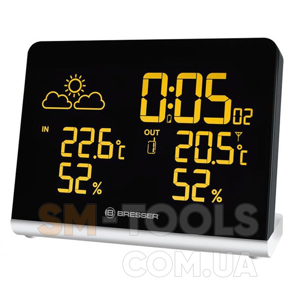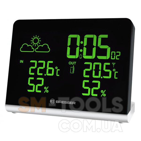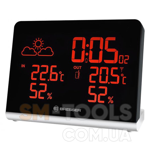 Метеостанция с контрастным цветным ЖК-дисплеем, прогнозом погоды, измерением внутренней и внешней температуры и относительной влажности.