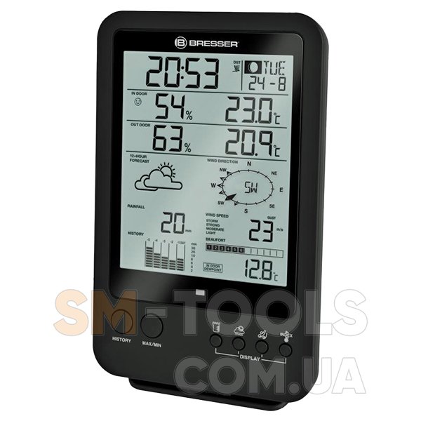 Метеостанция Bresser Weather Center 5-in-1 обеспечивает измерение таких метеопараметров как величина атмосферного давления, скорость и направление ветра, уровень, осадков, температура и относительная влажность воздуха. Встроенная функция тревожных оповещений предупредит вас о выходе измеряемых параметров за указанные пределы. Все датчики скомпонованы в едином блоке, что значительно упрощает и ускоряет процесс установки и монтажа.