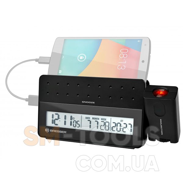 Стильные проекционные часы с радиоконтролем времени и USB-портом для зарядки мобильных устройств.