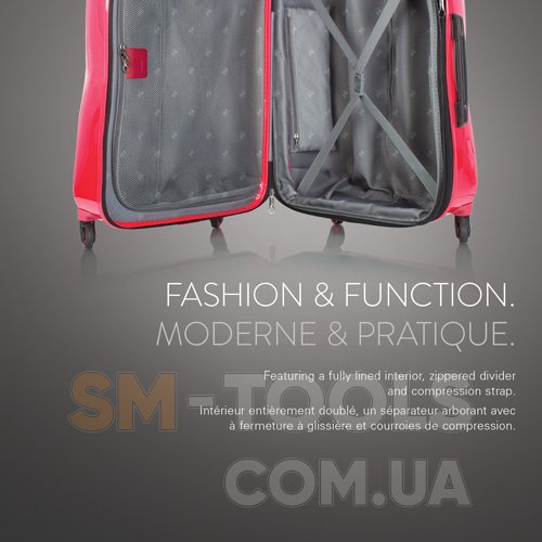 Защитный слой прозрачного покрытия придает эффектный глянцевый блеск багажу, защищая при этом оригинальный окрас изделия.