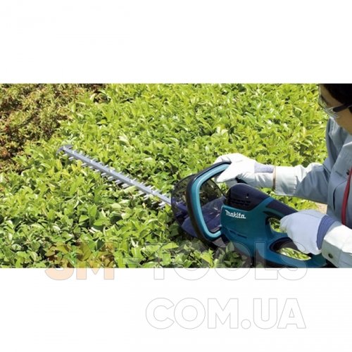 Кусторез Makita UH7580 предназначен для формирования ровной и аккуратной живой изгороди. Кусторез имеет три выключателя: на рукоятке, передней и нижней ручках. Лезвия начинают движение, только если одновременно нажаты любые два из трех выключателей. Двухстороннее лезвие обеспечивает точное подравнивание. Специальная направляющая предотвращает отскакивание инструмента.