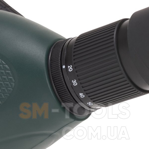 Настройка резкости осуществляется двухскоростным фокусером, что обычно присуще только подзорным трубам премиум класса. Такое решение позволяет настраивать фокус максимально быстро с помощью маховика грубой фокусировки и максимально точно с помощью маховика точной фокусировки. Дополнительное удобство представляет поворотно-выдвижной наглазник, позволяющий выставить любое необходимое расстояние до окуляра при наблюдениях в очках или без них.