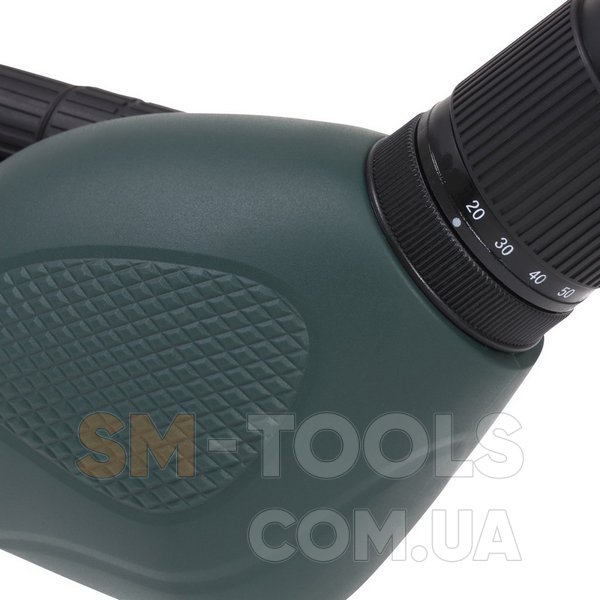 Настройка резкости осуществляется двухскоростным фокусером, что обычно присуще только подзорным трубам премиум класса. Такое решение позволяет настраивать фокус максимально быстро с помощью маховика грубой фокусировки и максимально точно с помощью маховика точной фокусировки. Дополнительное удобство представляет поворотно-выдвижной наглазник, позволяющий выставить любое необходимое расстояние до окуляра при наблюдениях в очках или без них.
