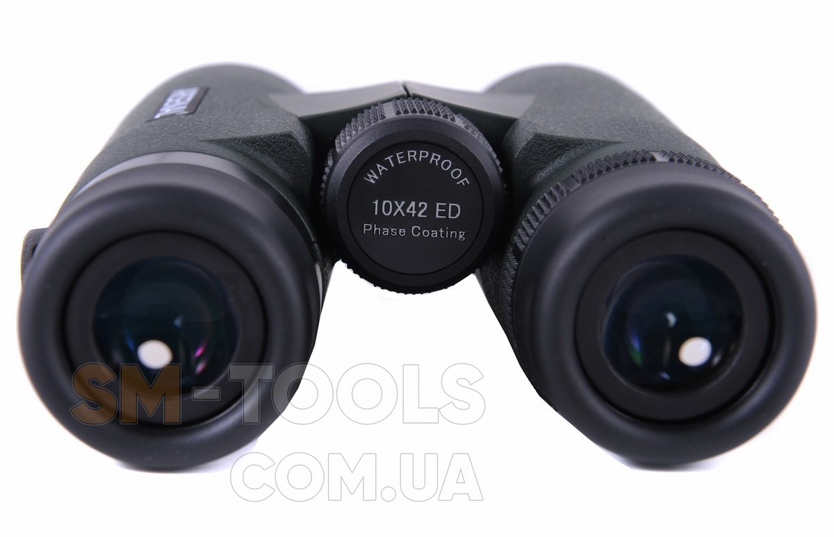 Бинокль выполнен по оптической схеме ROOF. Его объективы (ED дублет) имеют световой диаметр 42 мм и покрыты просветляющим покрытием типа FMC (Fully Multi Coated) зеленого и фиолетового оттенков.